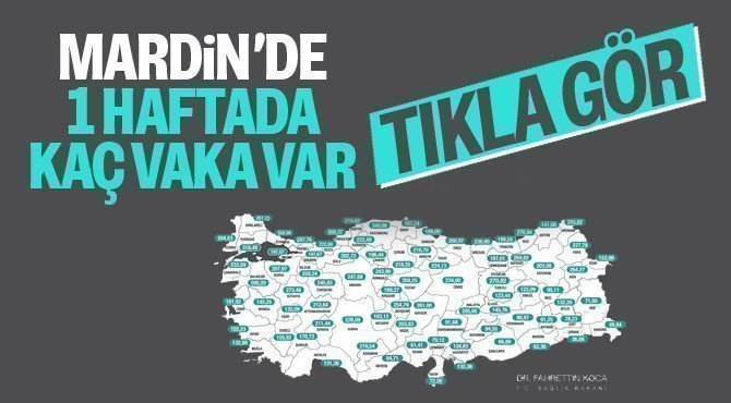 Haftalık verilere göre onun 100 bin kişide en az koronavirüs vakası ise Şırnak, Adana, Mardin, Şanlıurfa ve Van'da görüldü.