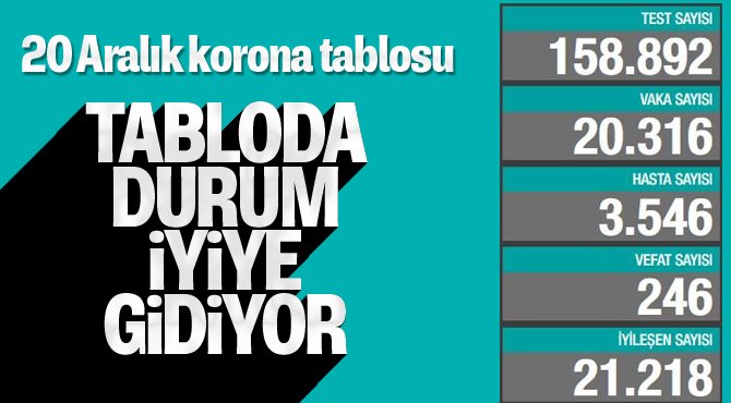 Bugün toplam 158 bin 892 test yapıldı. Semptom gösteren 3 bin 546 kişiyle birlikte toplam 20 bin 316 yeni vaka tespit edildi. Türkiye’de toplam vaka sayısı 2 milyon 24 bin 601 oldu.