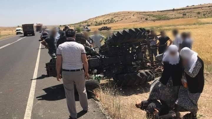 Mardin'in Midyat ilçesinde traktör sürücüsü direksiyon hakimiyetini kaybetmesi sonucu takla atarak yoldan çıktı.Midyat Dargeçit yolu üzeri kontrolden çıkan traktördeki 5 kişi yaralandı.