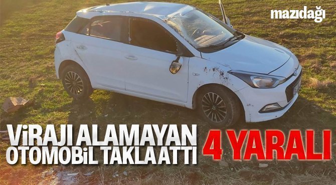 Edinen bilgilere göre, Mazıdağı'na bağlı Balpınar köy yolunda seyir halinde olan ve 4 kişinin bulunduğu otomobil, sürücüsünün virajı alamaması sonucu takla attı.