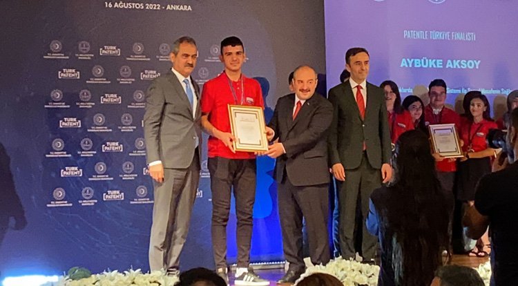 Midyat Fen Lisesi Öğrencisi Yusuf Yenigün, ödülünü Sanayi ve Teknoloji Bakanı Sayın Mustafa Varank ile Bakanı Mahmut Özer'in katılımlarıyla gerçekleştirilen törende bakanların ellerinden aldı.