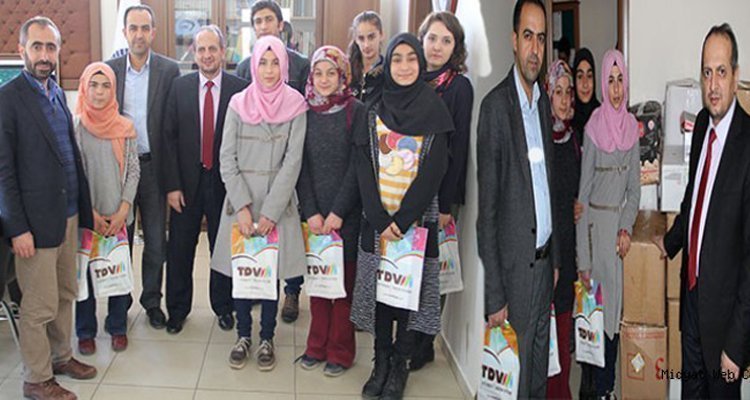 Kız Anadolu İmam Hatip Ortaokulu öğrencilerinin toplamış olduğu yardım kolileri, Halep'e gönderilmesi üzerine Midyat İlçe Müftüsü Mehmet Şafi Bilik’e teslim edildi.