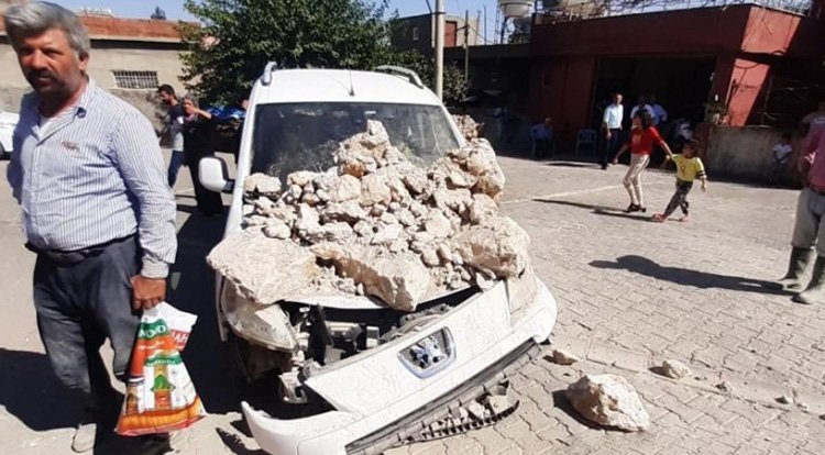 Mardin’in Midyat ilçesi Gölcük Mahallesi 432 Sokak’ta iş makinası çalışma yaparken, istinat duvarı çöktü.