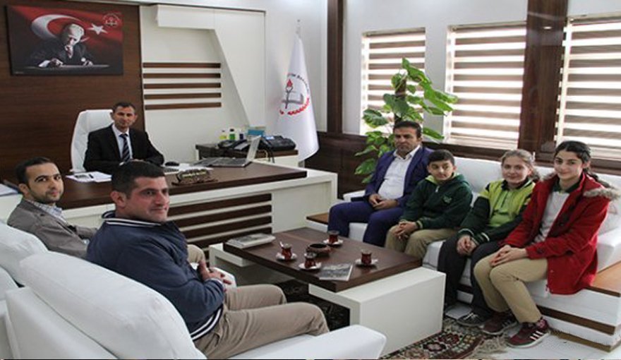 75. Yıl İMKB Okul Müdürü Yılmaz Ölmez ve Türkçe Öğretmeni Ahmet Aytimur’un desteğiyle hazırlanan ‘Cennet Güllerine Mektup Var’ isimli Kitap’tan Midyat İlçe Milli Eğitim Müdürü Abdulkadir Altay’ı, ziyaret ederek hediye ettiler.