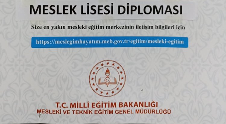 “Ustalık Belgesi sahibi Esnaf ve Sanatkârlara büyük fırsat tanındı. Mesleki ve Teknik Eğitim kapsamında yeni çıkan kanun ve alınan karar gereği 08/04/2019 tarihinden önce Ustalık Belgesi sahibi olanlara, Cumartesi ve Pazar günleri verilecek telafi eğitimi kapsamında, 1 (Bir) yıl içinde Lise Diploması verilecektir. En geç 15 Ağustos 2022 tarihine kadar ilçemiz Mesleki Eğitim Merkezi Müdürlüğü’ne başvurarak kayıt yaptırılmalıdır. Adres: Halk Eğitim Merkezi 2. Kat İletişim: 0535 620 06 47”.